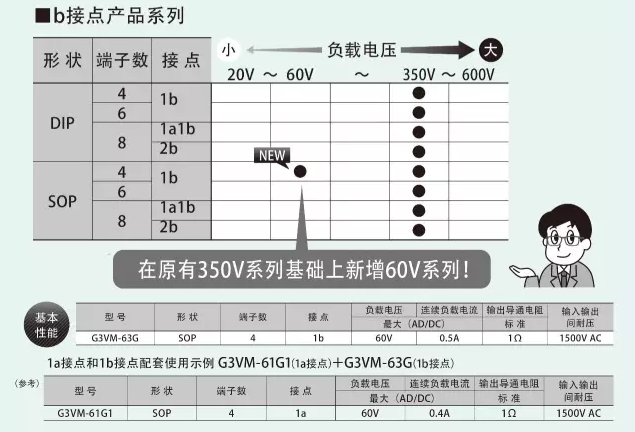 歐姆龍?zhí)赝瞥鲂⌒蚐OP封裝的60V/1b接點(diǎn)系列產(chǎn)品