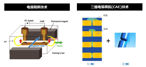 ● 通過與產業機構合作的三維電弧模擬技術*2,提高設計、技術檢驗的速度和質量。通過電弧現象的可視化,實現繼電器內部電弧阻斷過程的效率化及元件主體的小型化。
