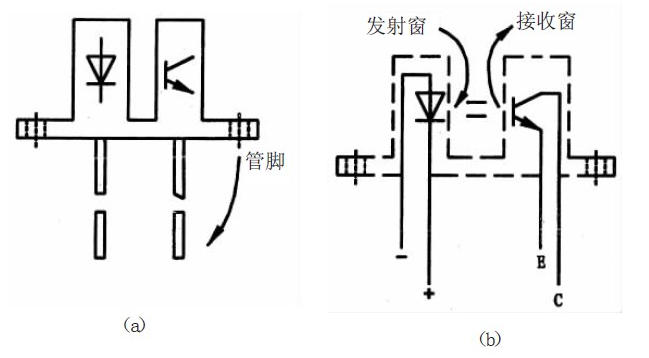 圖1 示出透射、隔離式光電開關的外形及內部構造。光電開關的用途極廣,可構成液位、轉速、流量傳感器,還適用于自動售貨機、保安裝置、通信設備中。