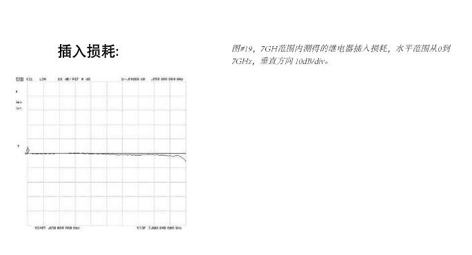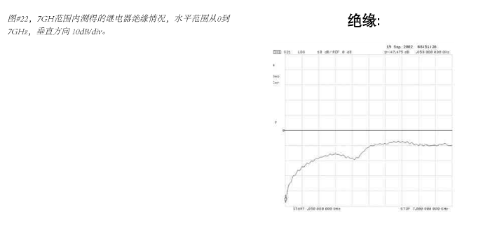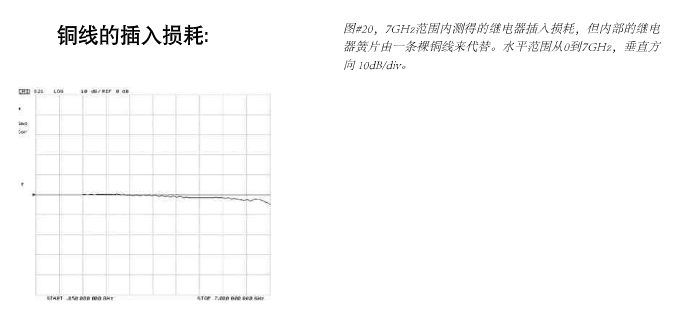 干簧開關(guān)的簧片已被一條純銅線所代替比較圖#19和#20兩圖的區(qū)別非常小或幾乎一致。當然在傳輸大功率信號時還是有些細微差別的。但我們的許多應(yīng)用的情況下信號功率都是非常低的因此我們在7GHz之前所存在的差異是可以忽略不計的。