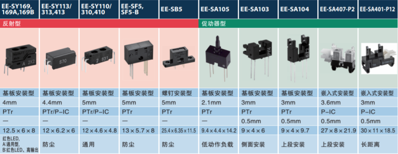 例如在打印機、智能設(shè)備、工業(yè)機械等設(shè)備上可以使用EE-SX1088,EE-SX1041,EE-SF5EE-SX1081,這款小體積槽型和對射式光電開關(guān),驅(qū)動功耗低、靈敏度高,輸出電流高低,超小的超寬。