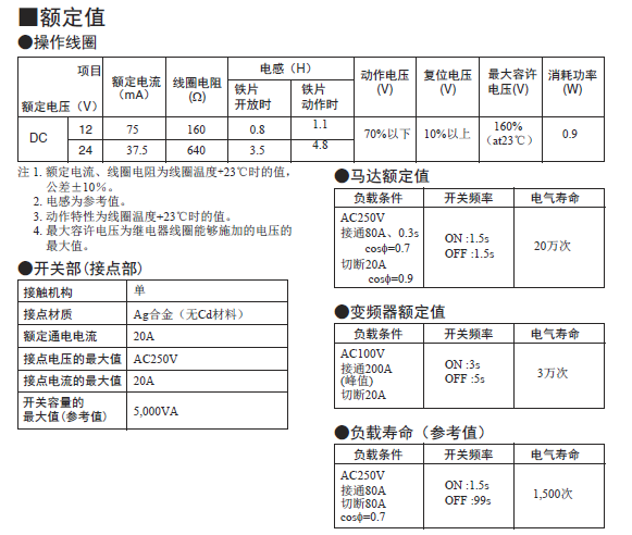 G4A 功率繼電器 實現通電80A、通電、切斷20A的1極小型功率繼電器 ? 實現通電80A、通電、切斷20A的電機負載開閉。小型卻可以實現高容量開閉、高耐久性。 ? 符合UL、CSA空調規格,確保絕緣距離。 ? 采用抗干擾性強的高絕緣構造。 ? 標準品采用耐焊劑構造。 通電80A、通電、切斷20A的1極小型功率繼電器