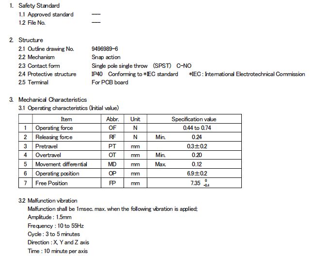 D2FC-F-7N, 克力為:60+/-15G,壽命為500萬次;