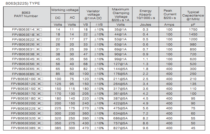 多層片式壓敏電阻器 FPV322513E3R3PMT